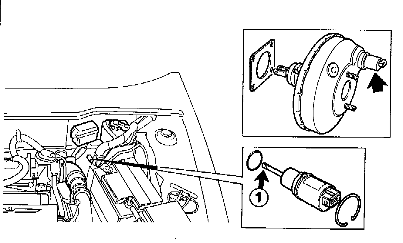 If the ECU then detects a defect in the power supply, the ABS will be completely inoperative. Since vacuum servo manufacturing tolerances may vary, the vacuum servo is marked with a colour code. Adjusting sleeves of different colors (depending on size) are supplied with the vacuum servo and travel sensor as spare parts. On replacement of the vacuum m servo or travel sensor, the sleeve with the same colour as the colour code on the vacuum servo must be fitted on the tip of the travel sensor (1).