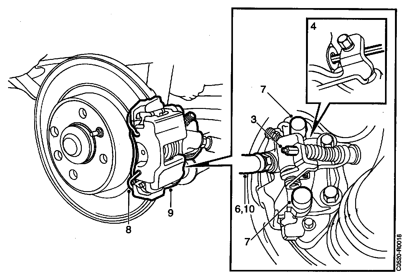 9. Lift off the hydraulic body and remove the brake pads.
