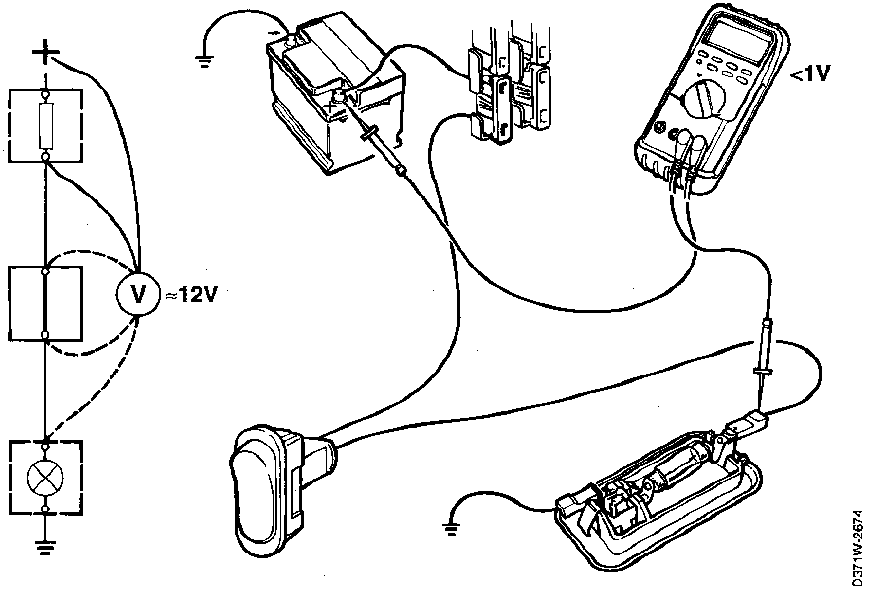 1. Connect the voltmeter's positive lead to that part of the cable or component closest to the power supply.