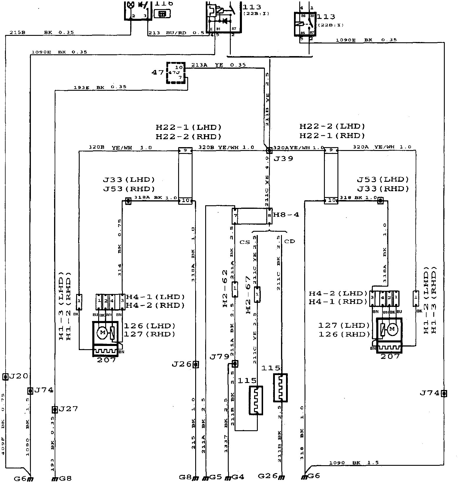 Instead of time-delay relay 113, cars with ACC are fitted with an ordinary relay which is controlled by the ACC unit.