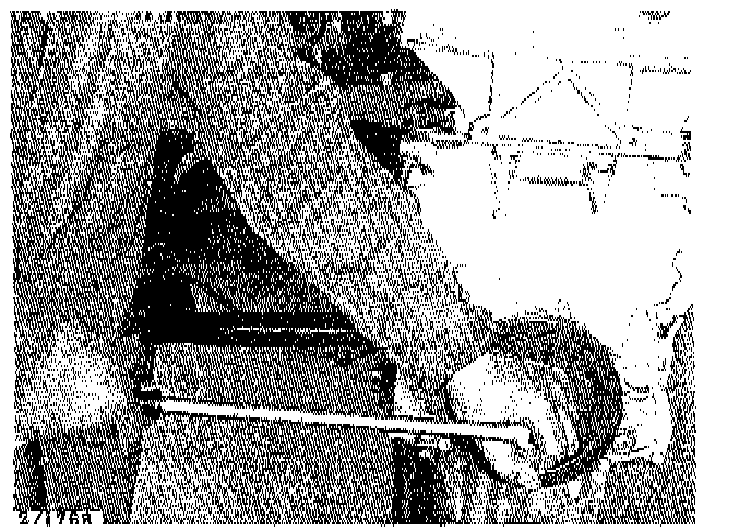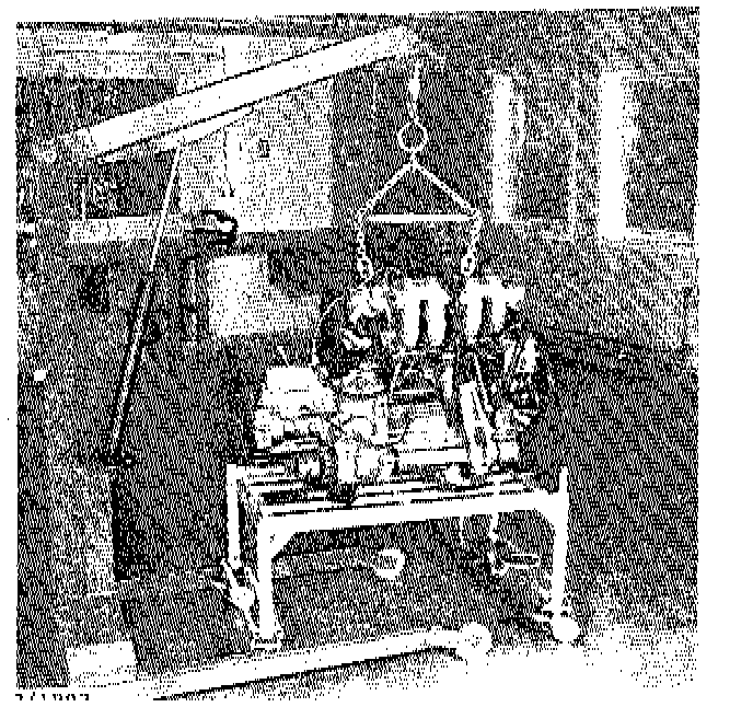 41. Install a lifting sling to the engine and lift the engine off the stand. Remove the bracket and lower the engine onto a trolley.