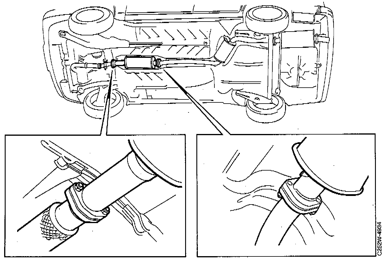 1. Raise the car and undo the bolts on the exhaust pipe.