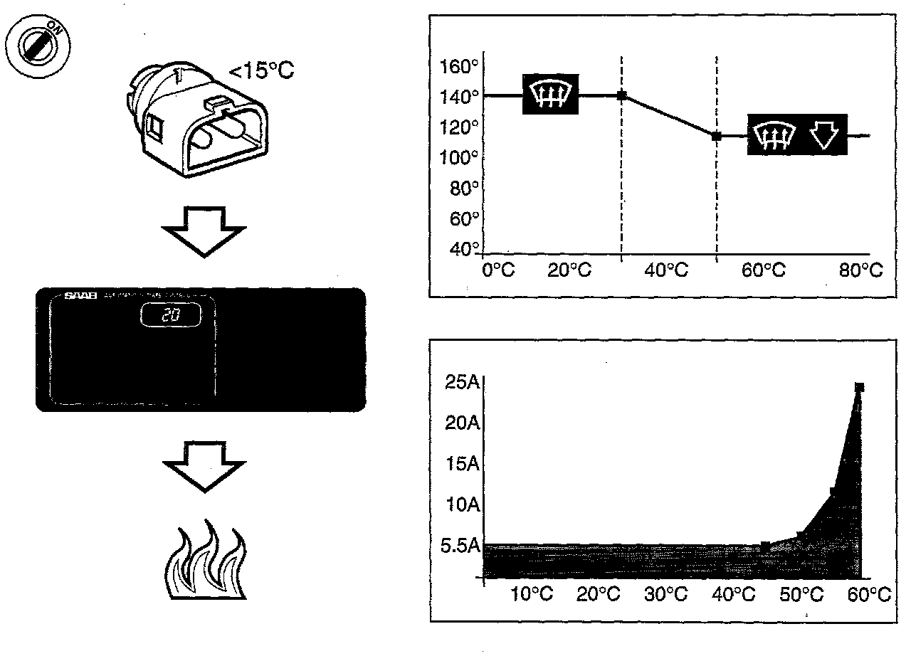 - Conditions are appropriate for cold start when outside temperature is 5 °C (9 °F) or more below the preselected temperature and the ACC control module has calculated that a blended air temperature greater than +80 °C (176 °F) is required.