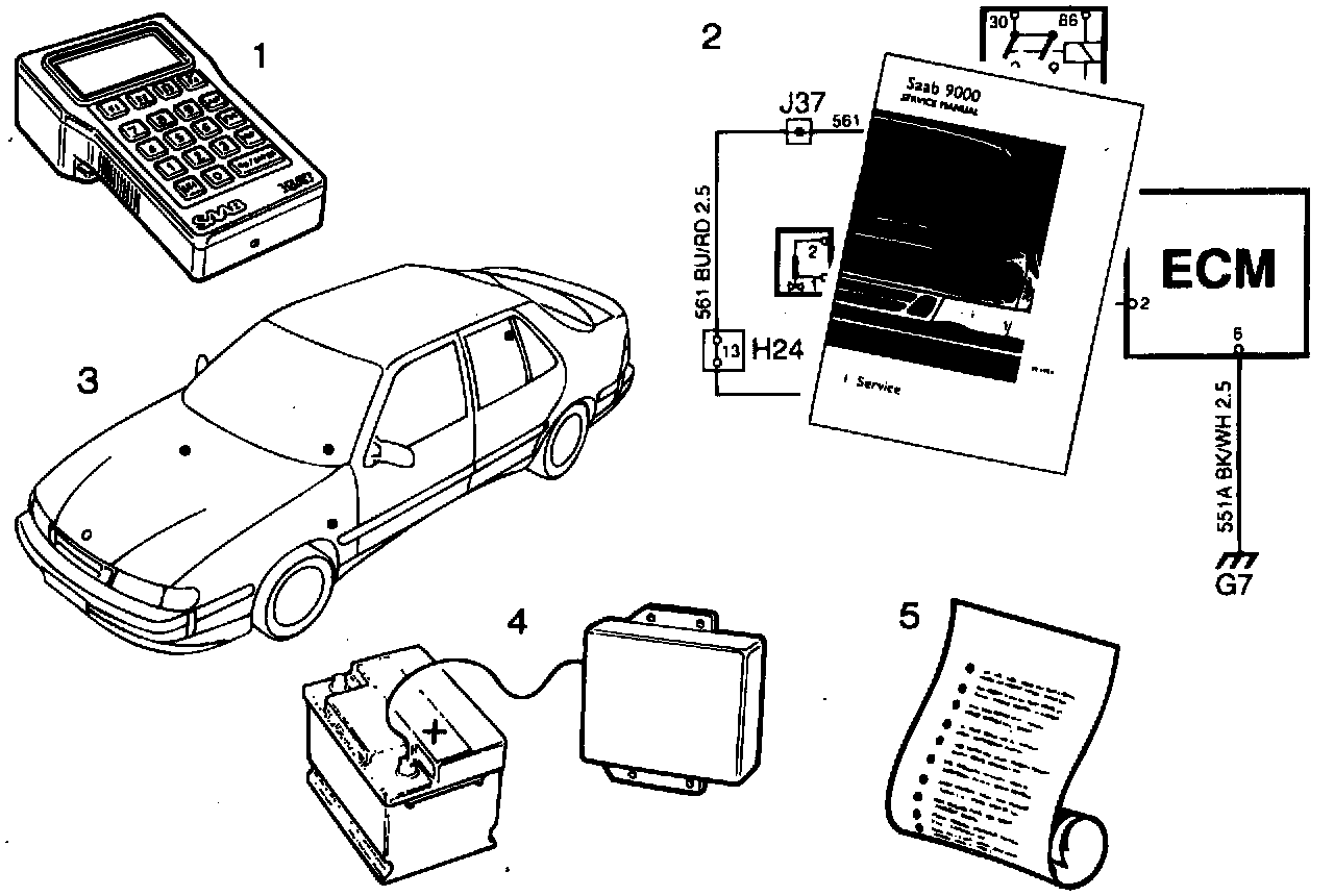 2 Study the appropriate wiring diagram and make sure that you understand it. If necessary, consult the appropriate parts of the technical description and the electrical function description.