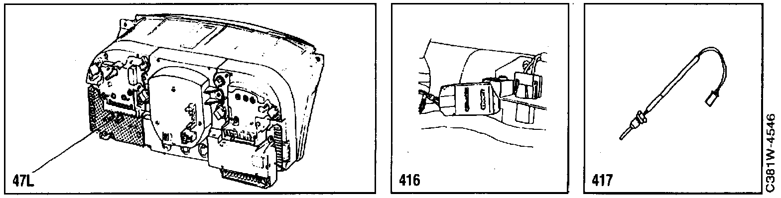 417 Temperature sensor, EXH, on the three-way catalytic converter.