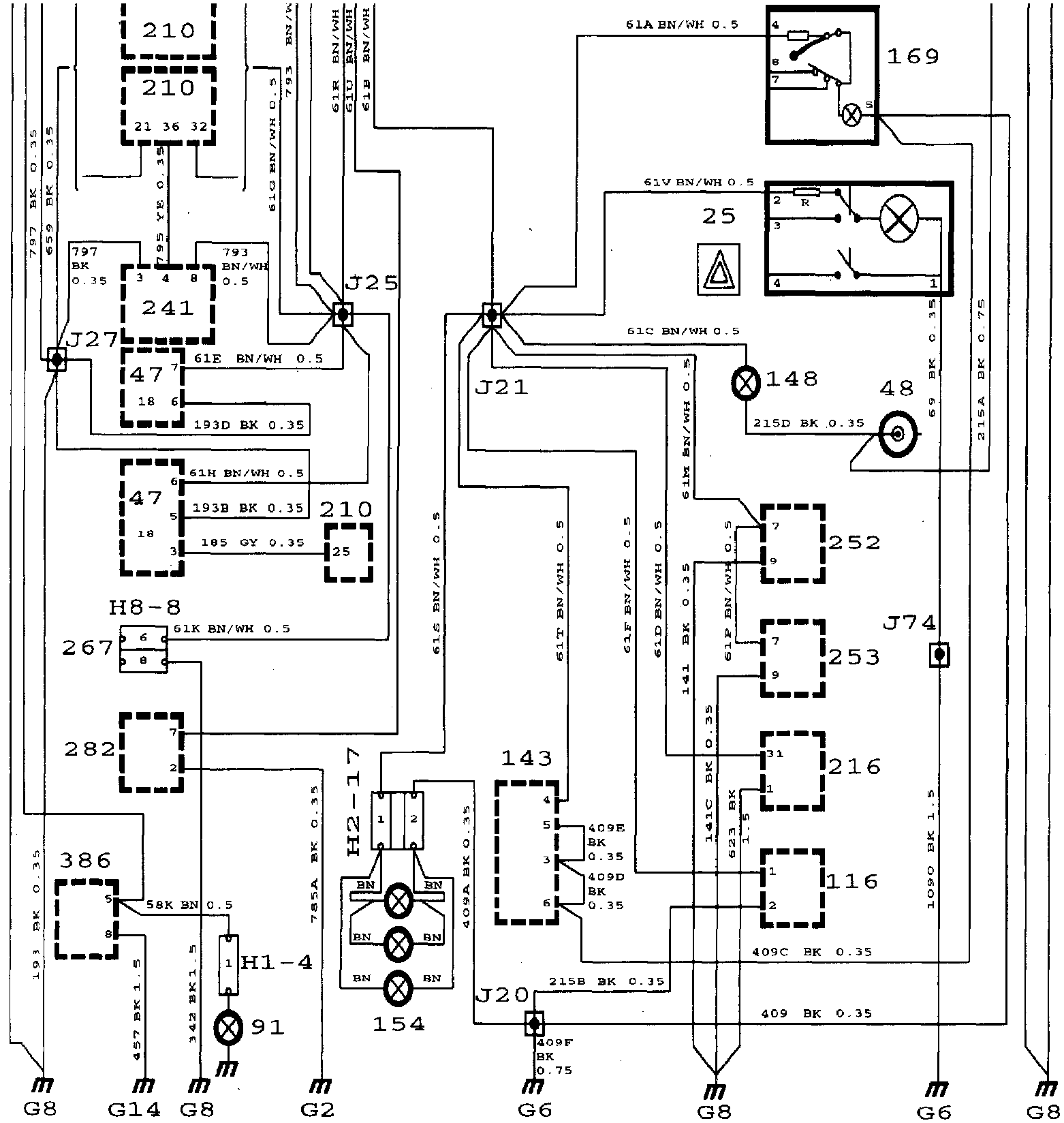 25 Switch, hazard flashers, beside centre air vent in dashboard.