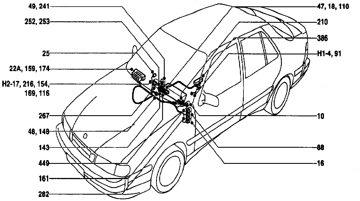 G8 Grounding point, dashboard, by the left-hand front loudspeaker socket.