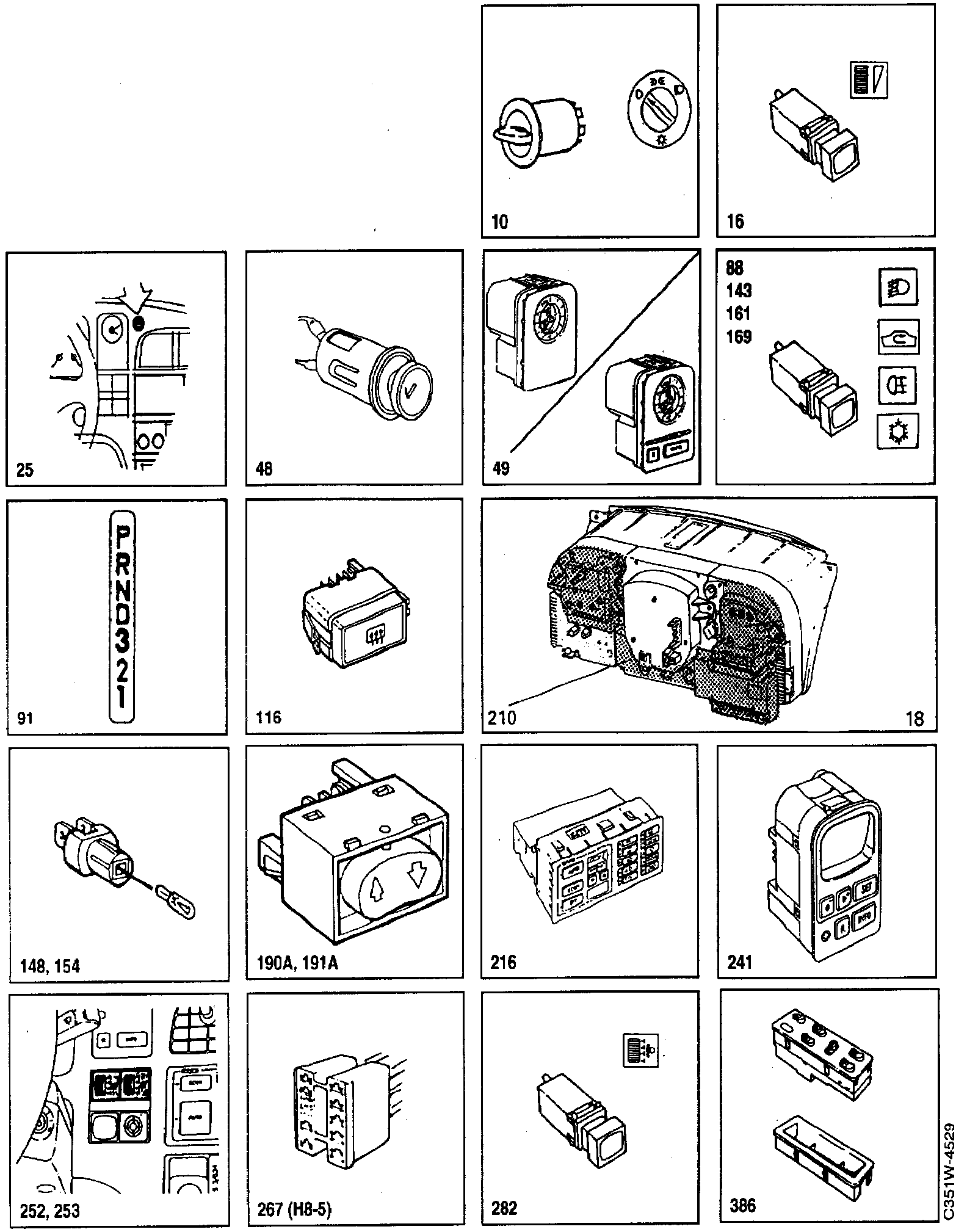 161 Switch, rear fog light, on dashboard between the steering wheel and driver's door.