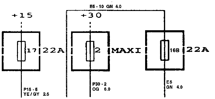If the supply to a fuse comes from the +30 terminal, the feed to the fuse in question is found in the "Power supply, +30 circuit".