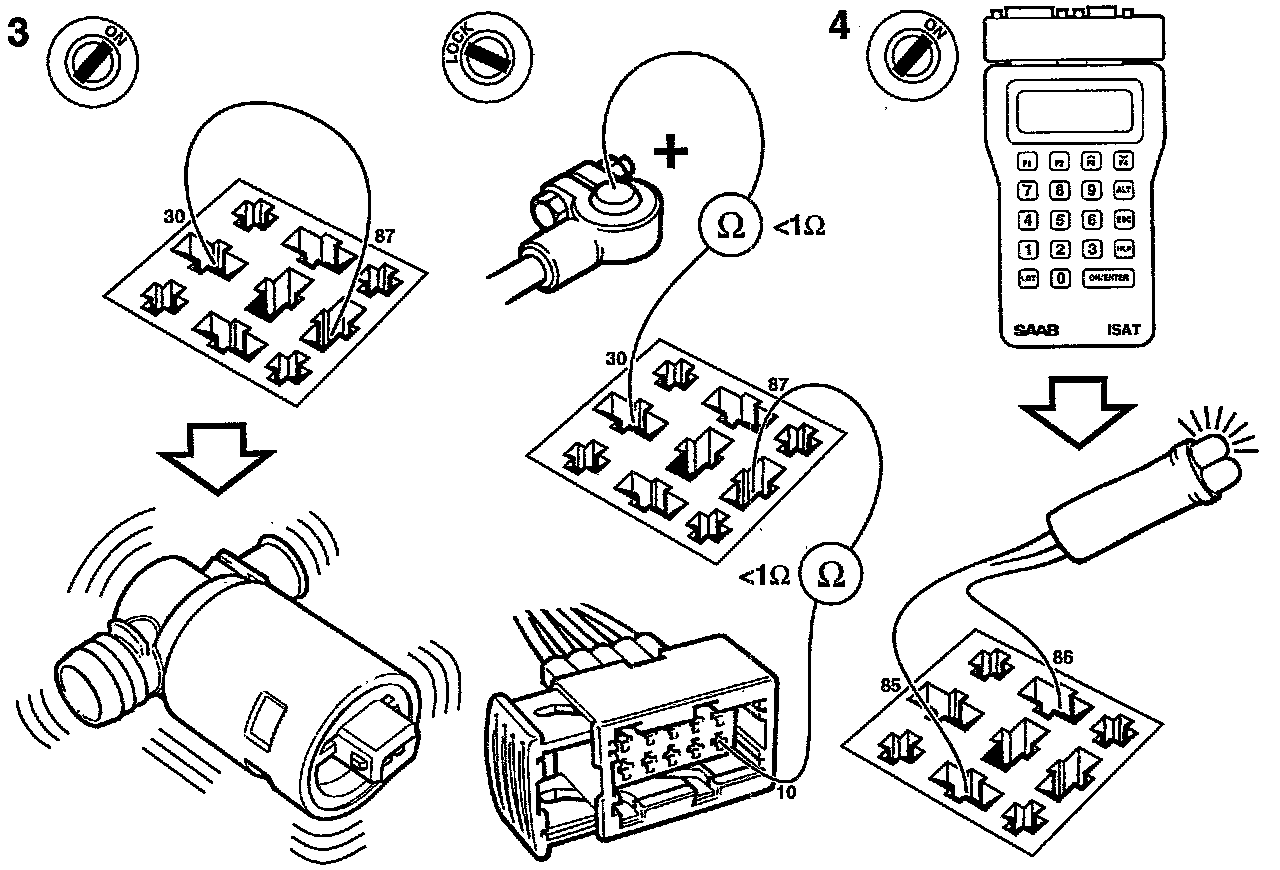 If the test lamp does not light up, check the lead between pin 86 and battery positive and take remedial action if necessary.