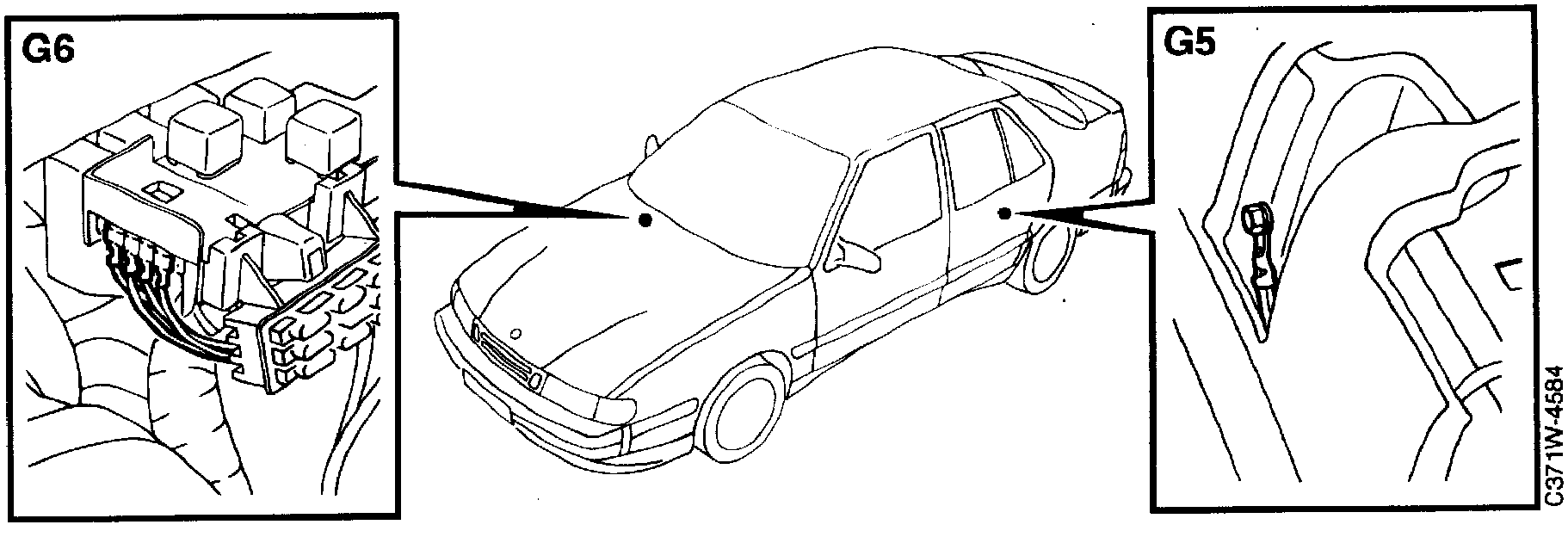 Negative distribution terminal G6 is located in the left-hand part of the main fuse box. The following components are connected: