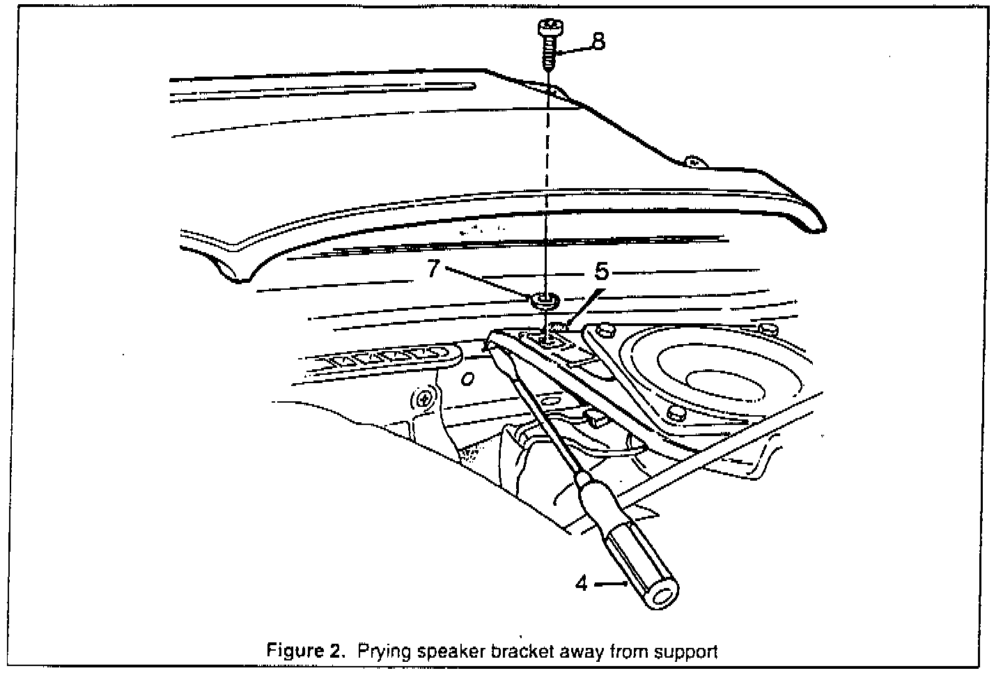 4. Pry the speaker bracket away from the dashboard support so they cannot meet. See Figure 2, item 4.