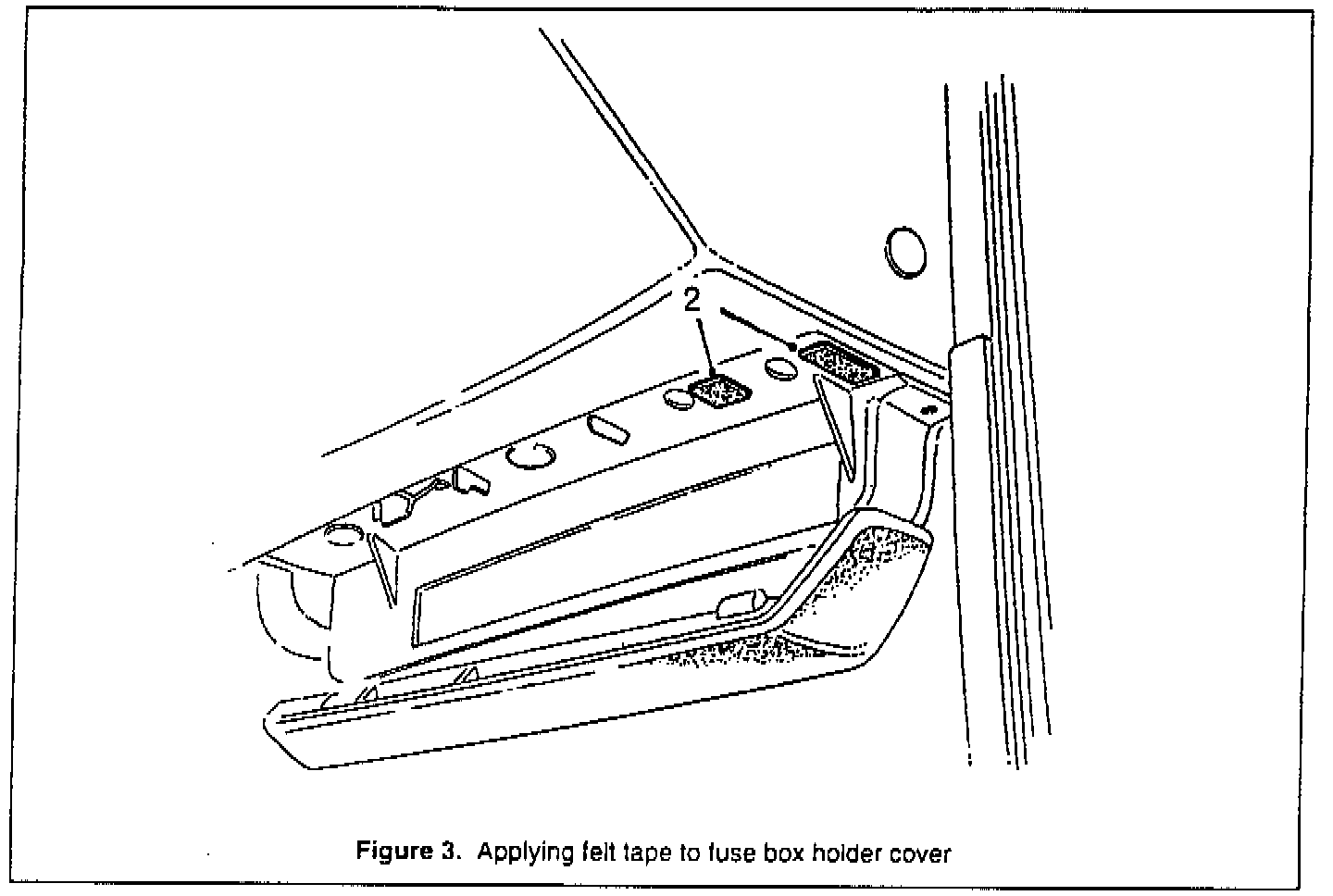 2. Apply two rectangular pieces of felt tape. P/N 96 98 846, as shown in Figure 3, item 2.