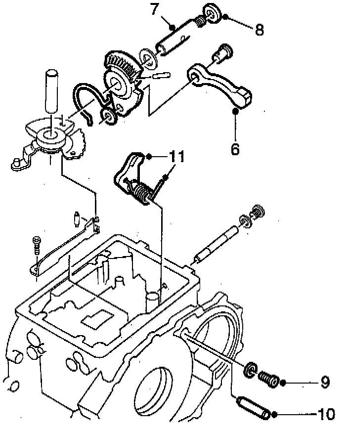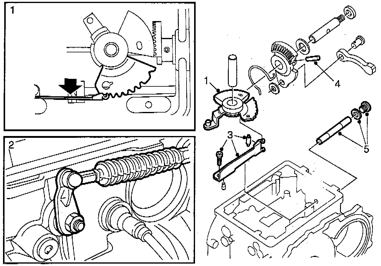 - Press the pawl spring (carefully and not too far) to one side and lift off the complete gear selector mechanism from the cylindrical pin.