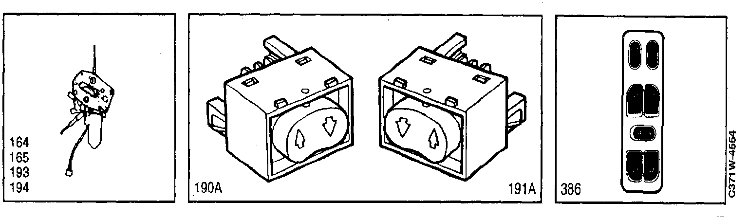 386 Switch, electric window lifts, on the centre console between the front seats.
