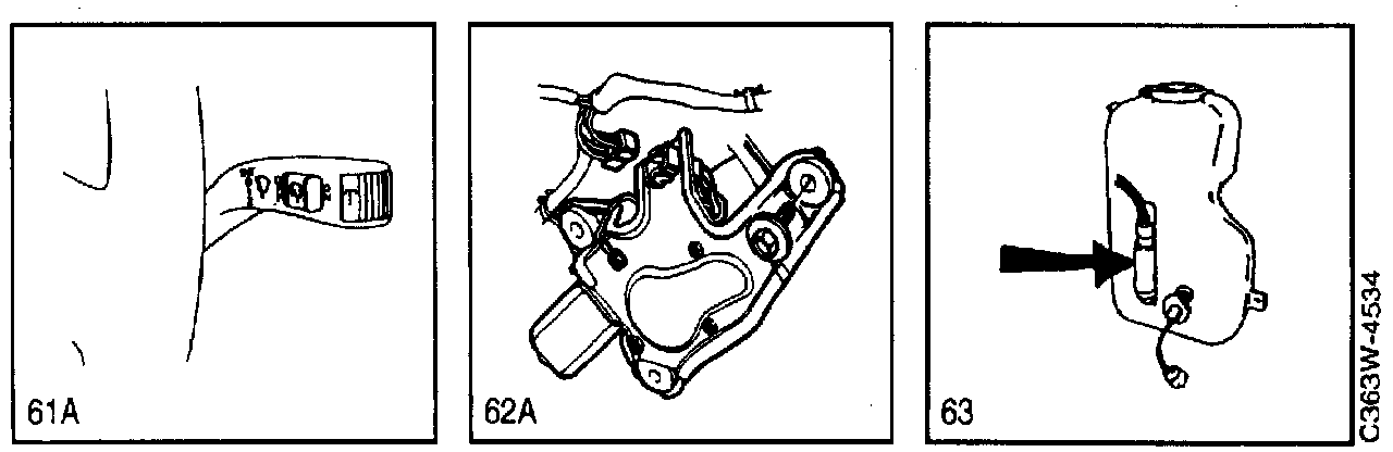 61A Switch, rear window wiper, on the windscreen wiper stalk switch on the right-hand side of the steering column.