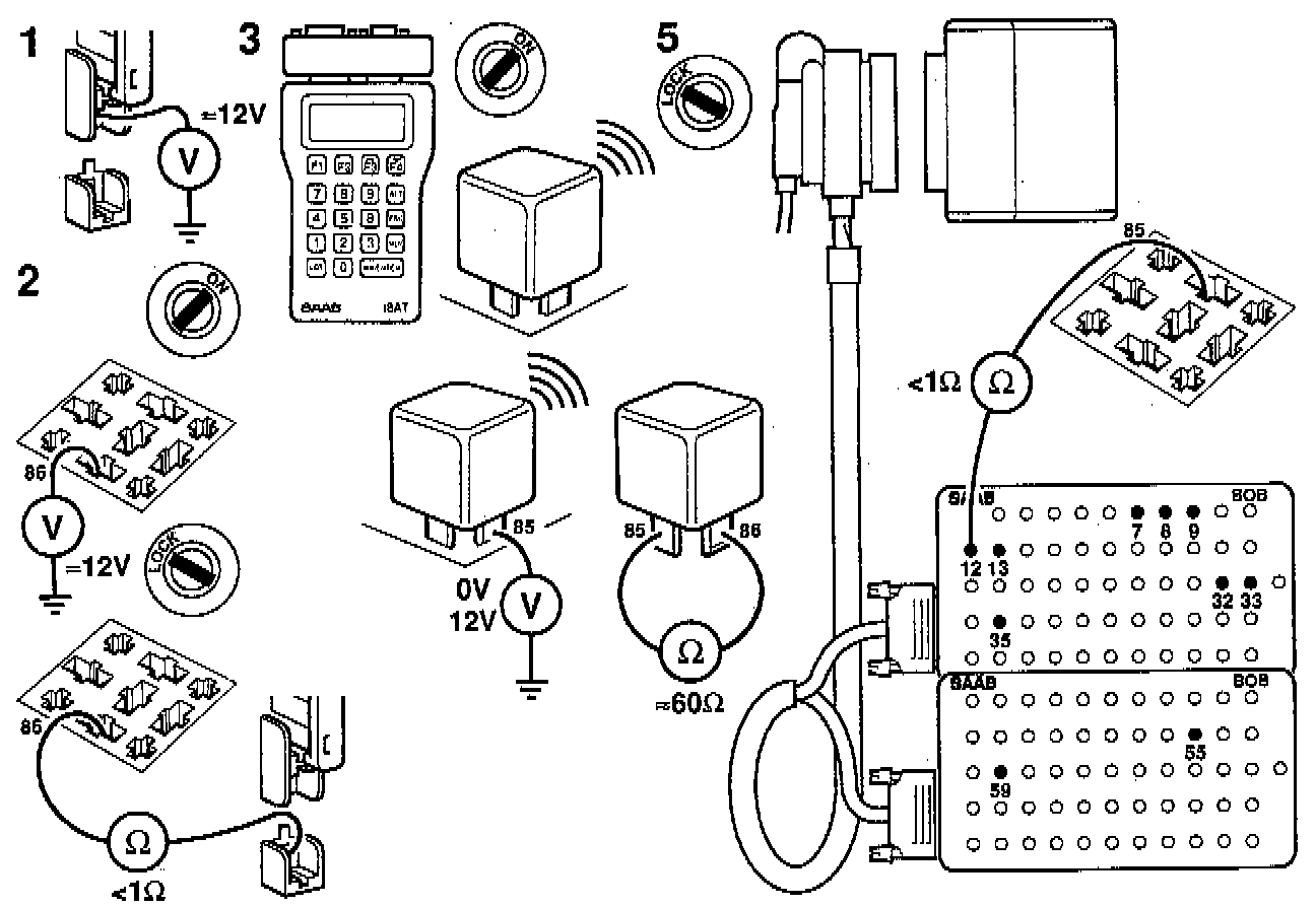 - Check connection 85 on the relay with a voltmeter, i e the relay should be in place but slightly raised. Repeat point 3 and read the voltmeter as follows: