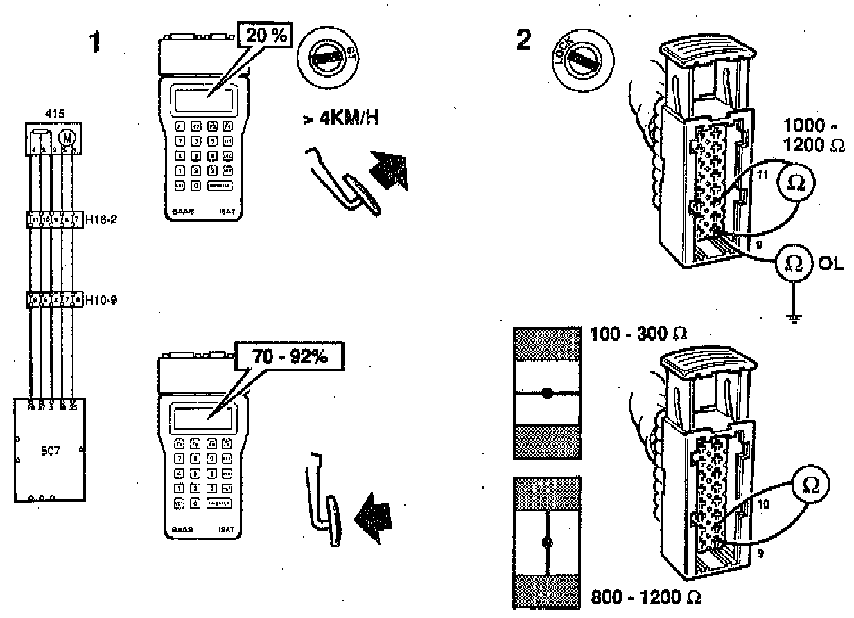 If this is not obtained, remedy the cable between pin 27 of the control module and pin 10 of the male connector (H16-2).