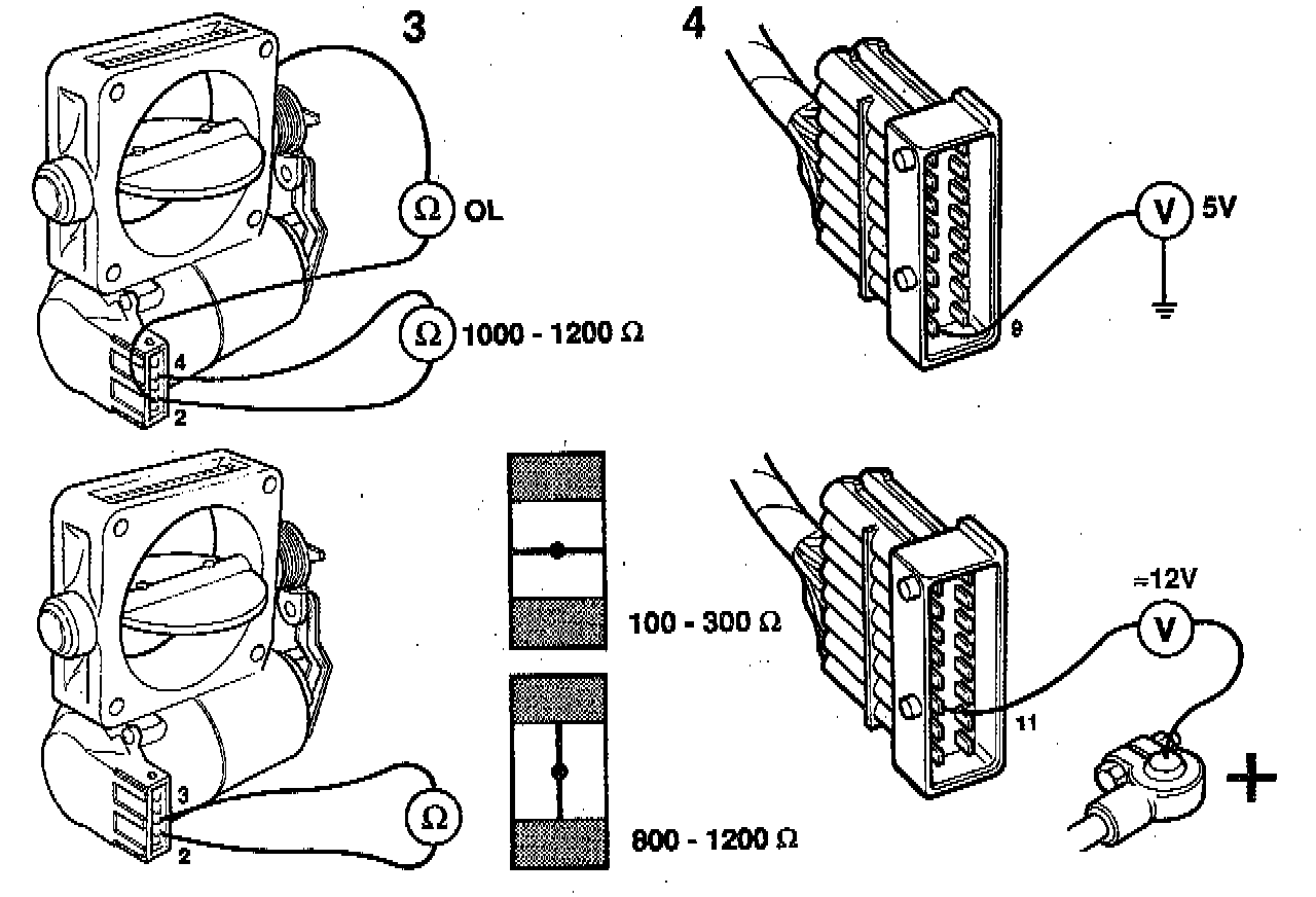 Carry out checking as described in point 2 above, directly on throttle body pins 2, 3 and 4.