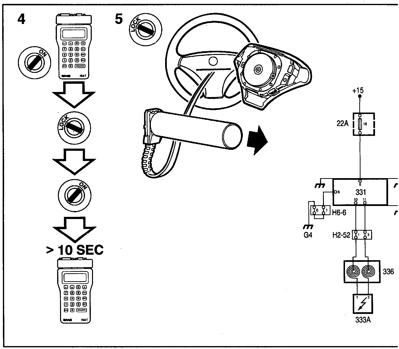 If the diagnostic trouble code returns: Switch off the ignition and remove the negative battery lead. Change the steering wheel airbag. Then proceed to point 10.