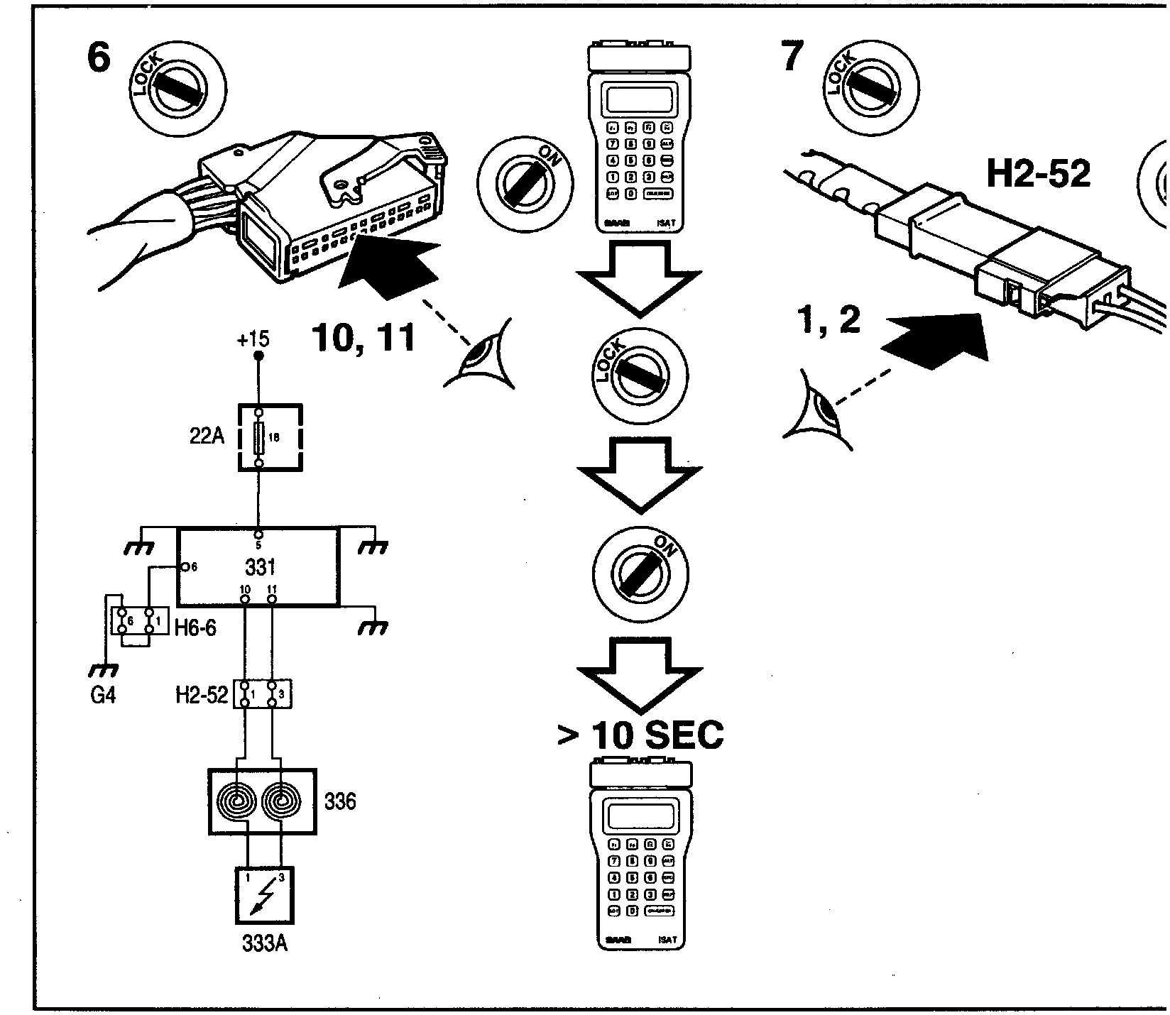 7. Switch off the ignition. Unplug connector H2-52 and check pins and sleeves for breaks and bad connections.