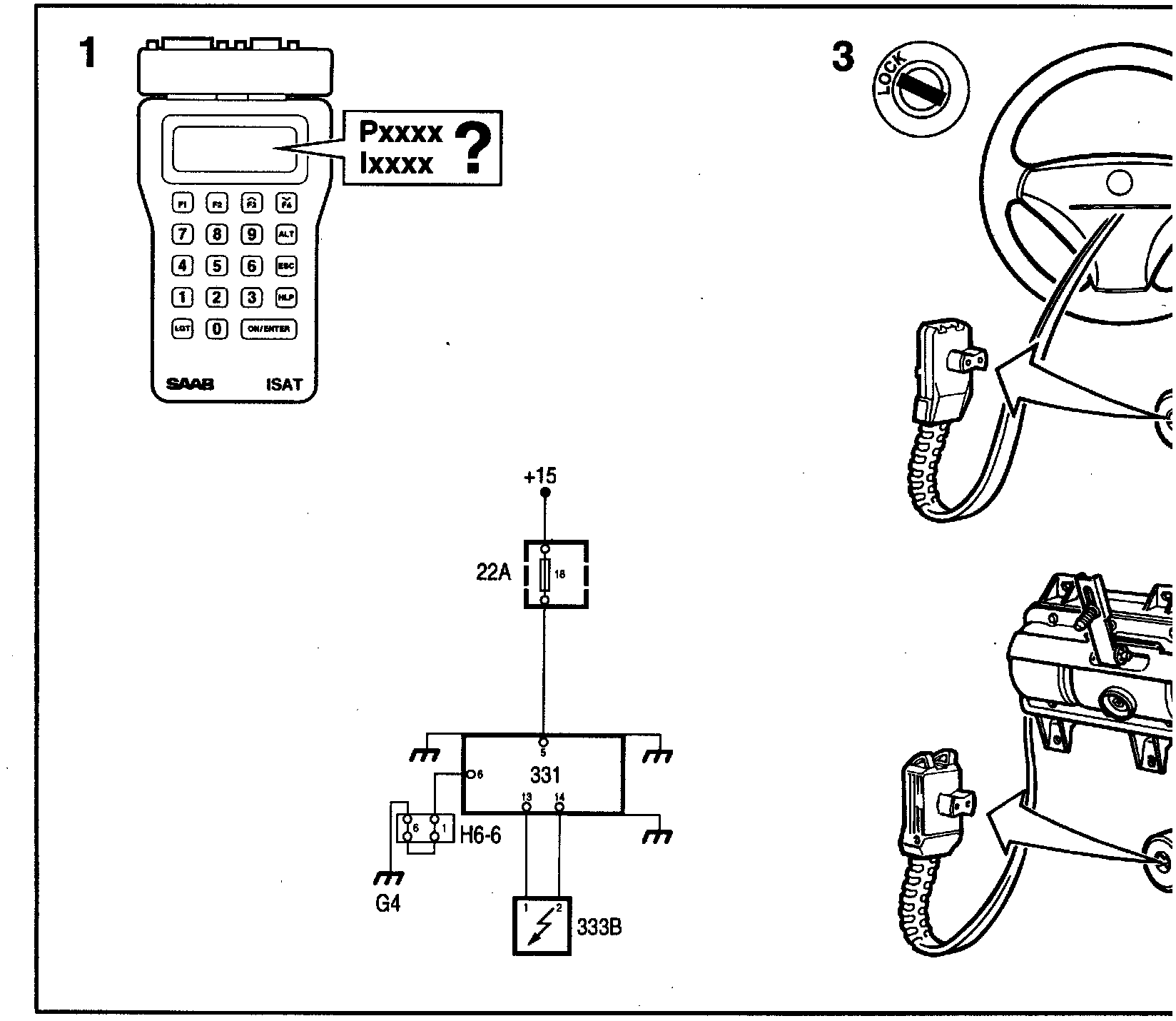 1. Connect the ISAT Note the diagnostic trouble code and the type of fault. P=permanent fault, I=intermittent fault.