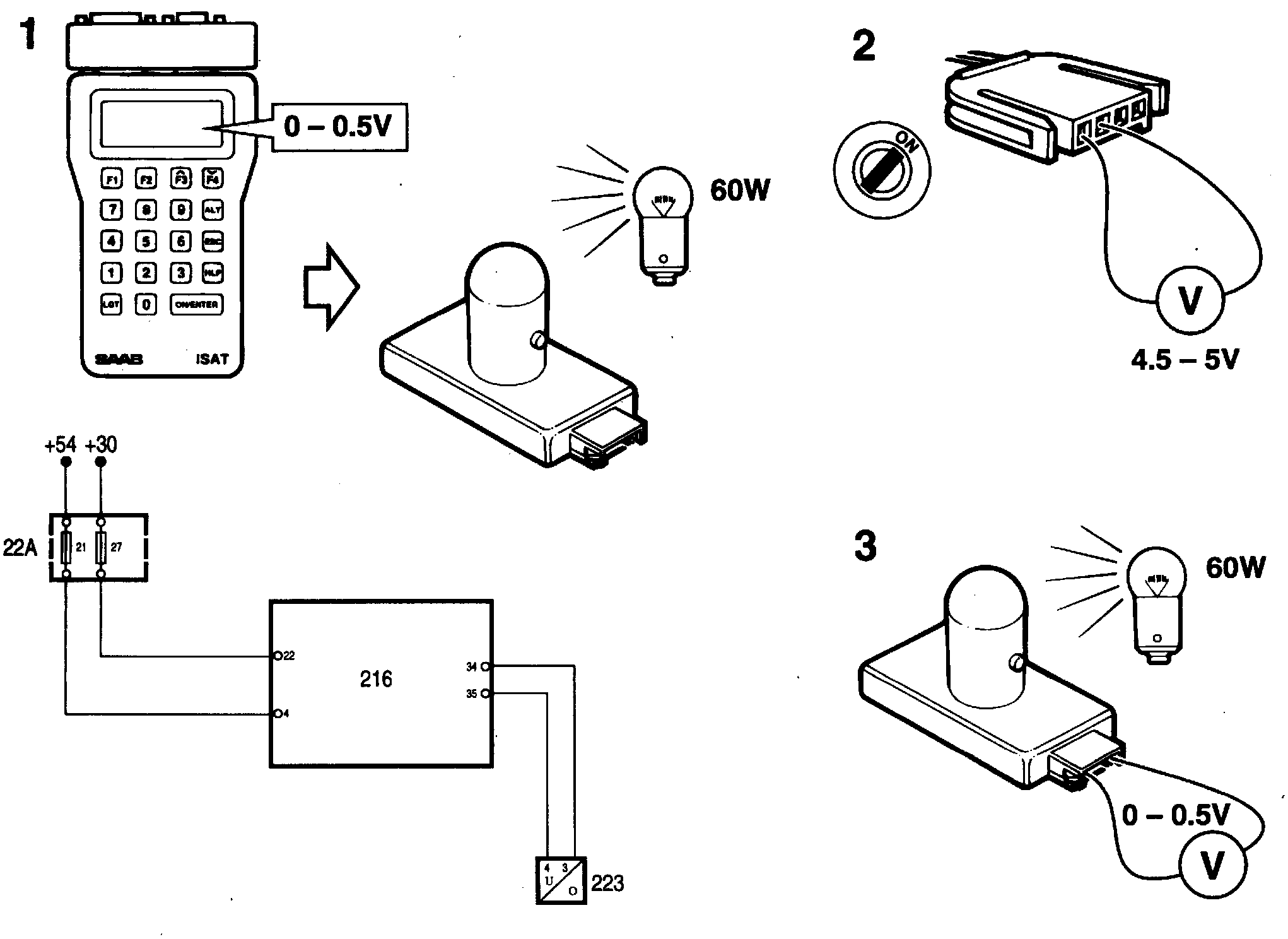 3. Illuminate the solar sensor with a lamp and at the same time measure the voltage across the sensor's connections. It should be 0 - 0.5 V.
