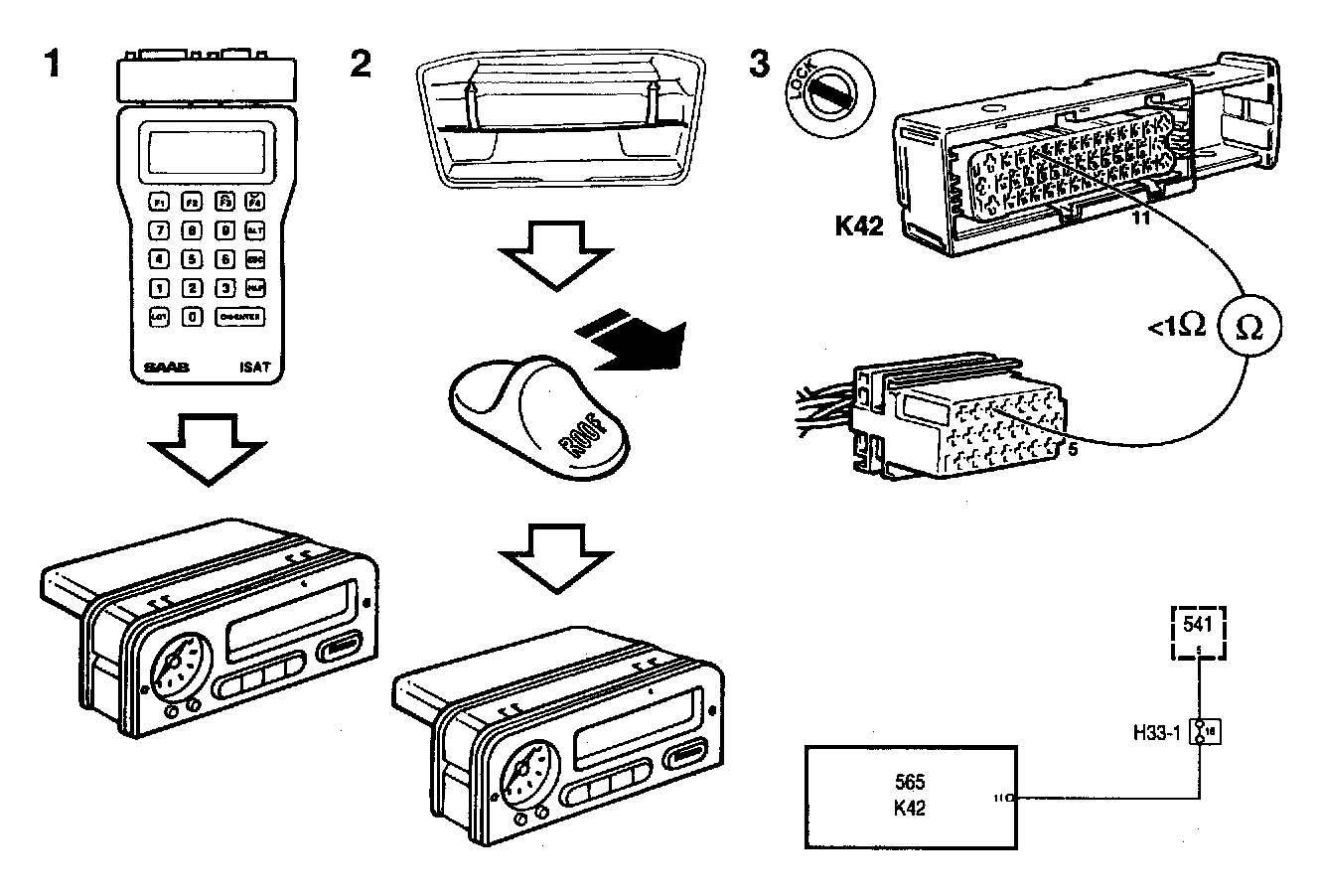 - Check the wiring between pin 5 of the SID unit and pin 11 (k42) of the TSAS control module for continuity and/or shorting to ground.