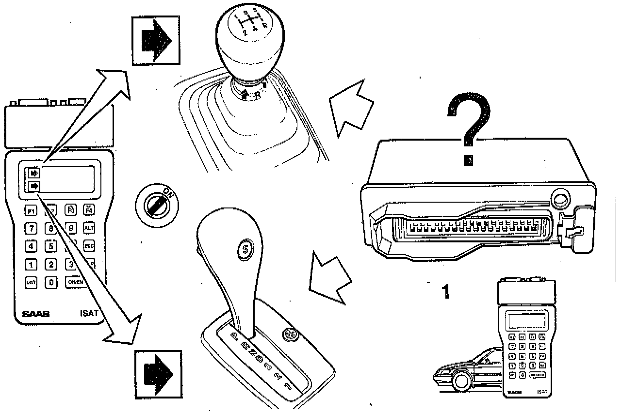 Program the control module by means of an ISAT (scan tool). For the M94 TCS control module there are only two variants, one for the Saab 900 with manual gearbox and one for the Saab 900 with automatic transmission.