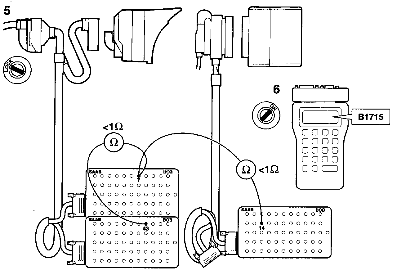 5 Take a reading to test for continuity between pin 7 on the BOB connected to the main instrument display panel's connector and pin 14 on the other BOB.