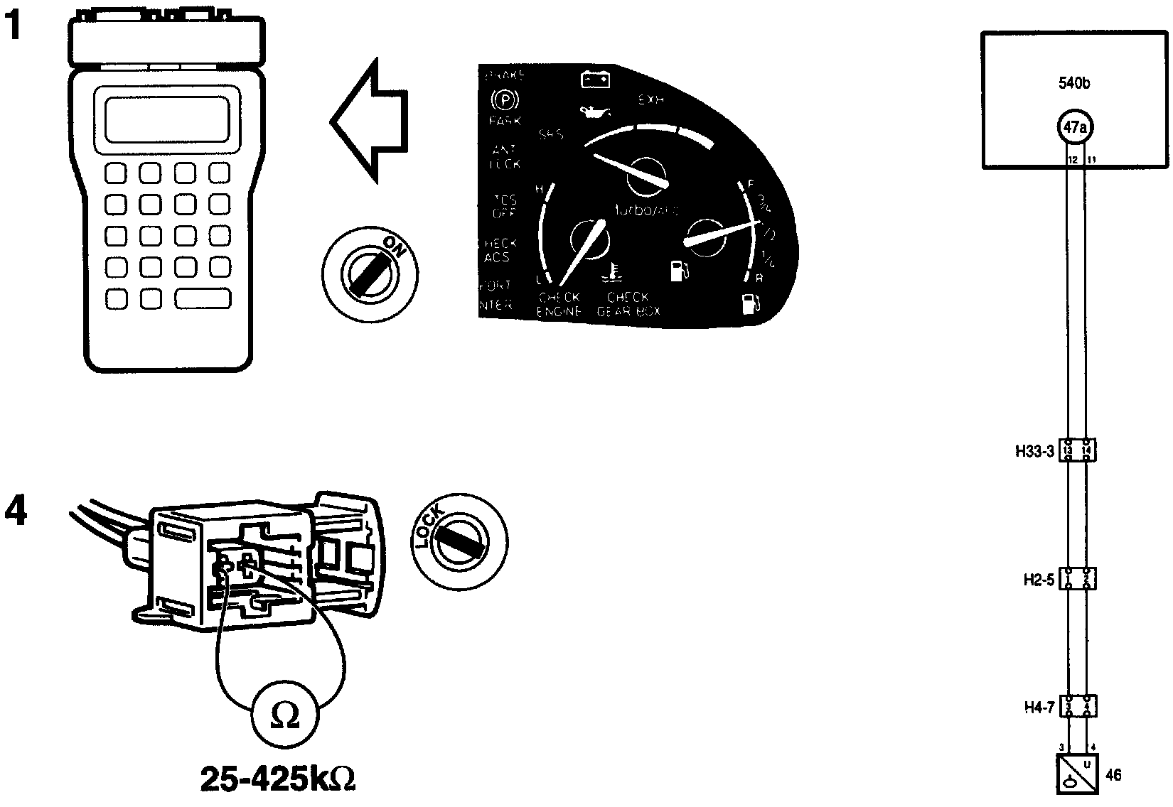 3 If the display shows tank contents = 0, the fuel level sensor signal sent to the main instrument display panel is faulty. In this case, continue by checking the fuel level sensor, point 4.