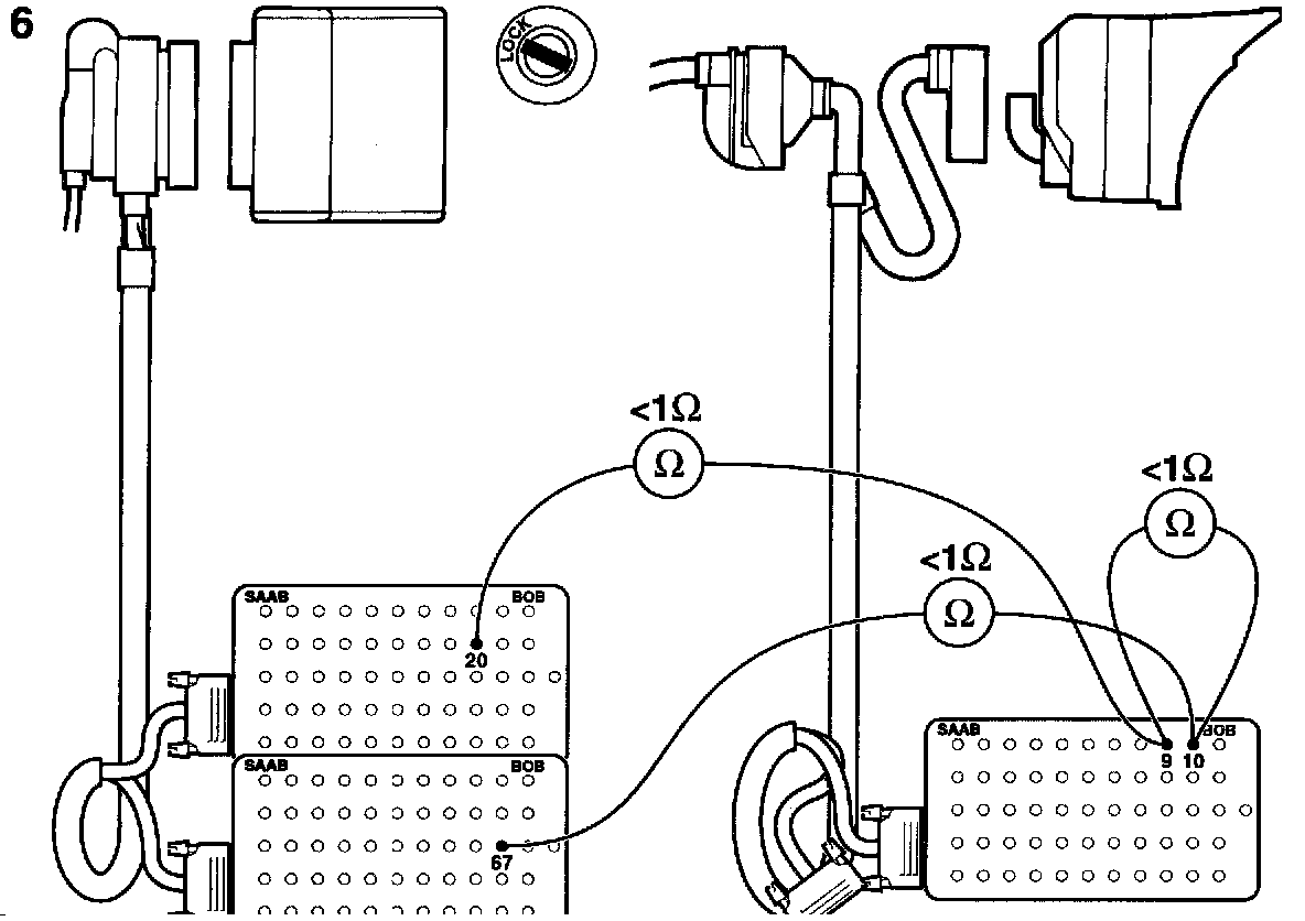 6 Take a reading across pins 9 and 10 on the main instrument display panel and across pins 20 and 67 on the other BOB to check for an open circuit or short circuit.