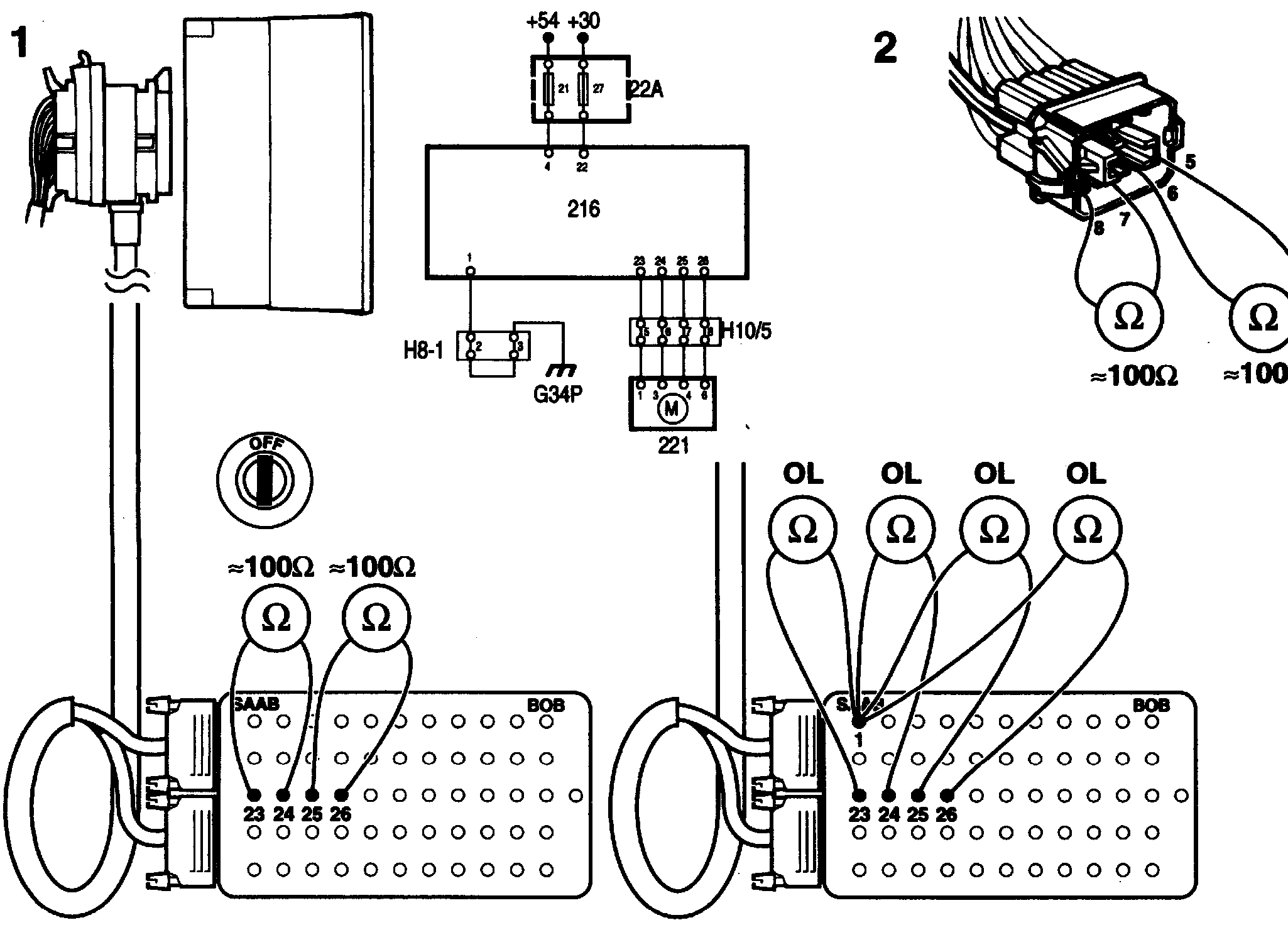 Also check that no shorting to ground occurs by measuring the resistance across ground and terminals 23, 24, 25 and 26. The correct resistance is OL (infinite).