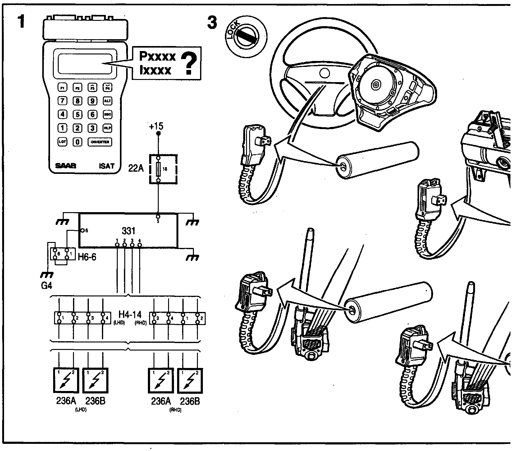 1. Connect the ISAT Note the diagnostic trouble code and the type of fault.P=permanent fault, I=intermittent fault.