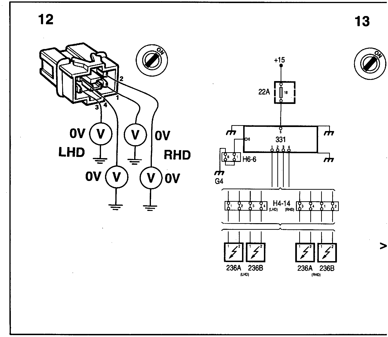 If the value is incorrect: If any of the measurements shows voltage,there is a bypass to battery positive voltage in the cable assembly between the 4 pin connector and the SRS control module connector. Investigate the cause and remedy the fault. Then proceed to point 13.