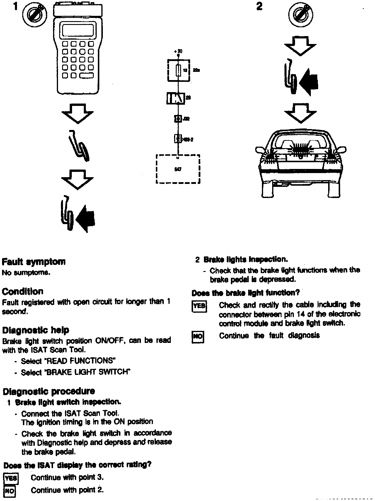 YES- Check and rectify the cable including the connector between pin 14 of the electronic control module and brake light switch.