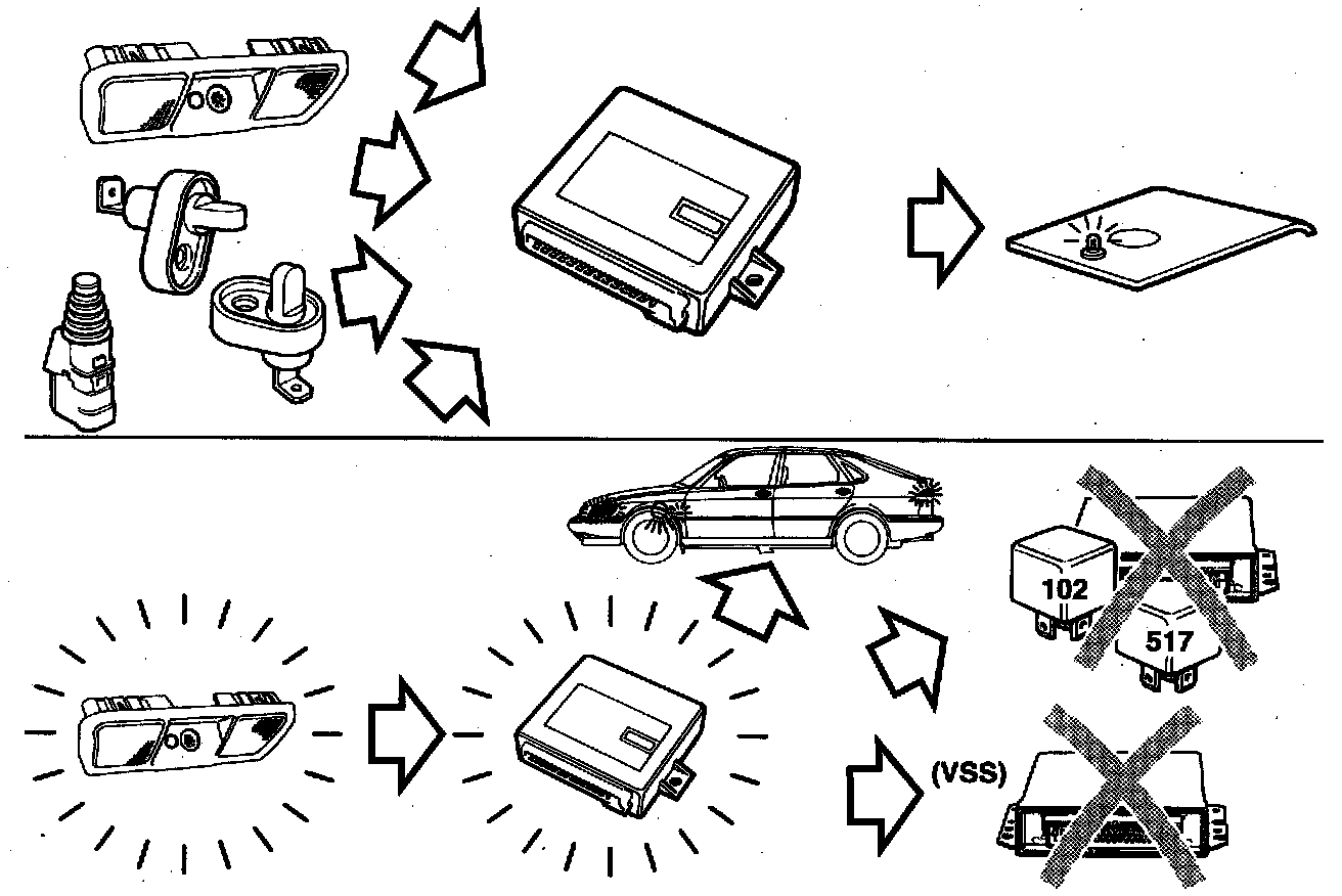 Incorporated in anti-theft alarms with VSS is an "immobilizing" function which, via the car's engine management system, always prevents unauthorized persons from starting the car.