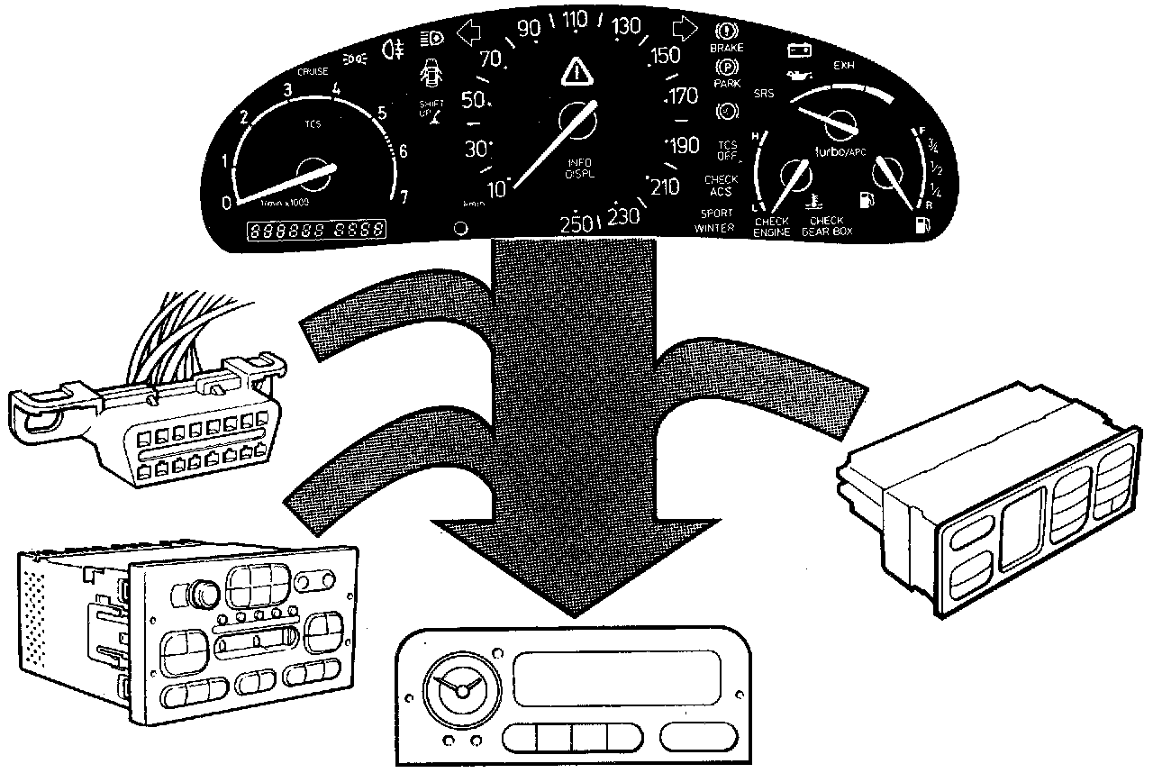 - Outside temperature sensor (pin 19), see Clock and Outside Temperature