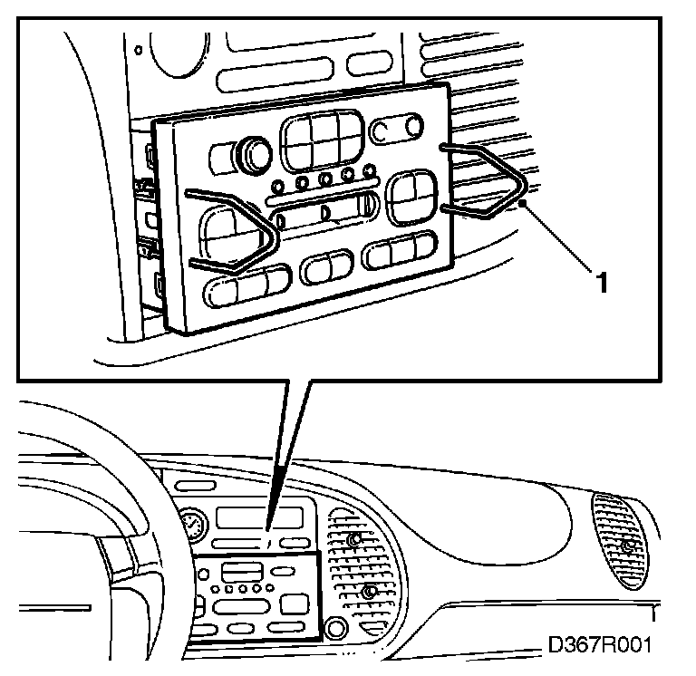 1. Disconnect and lift out the radio- cassette using special tool 84 71 161.
