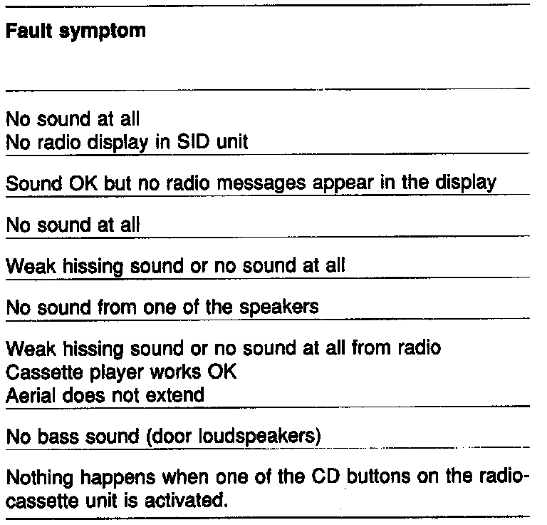 To enter the diagnostics mode, press the RADIO button and then switch on the radio.