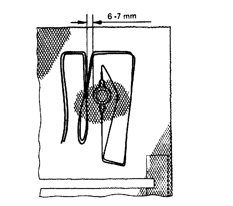5. Heating pads on netting: Adjust the distance between the heating wires and the thermostat to 6-7 mm. Secure the wires with thread, for instance. If necessary, use impact adhesive to secure the heating pad in position. Heating pads on foam plastic. The heating wires should be 8-10 mm from the thermostat. Carefully cut away the foam plastic around the thermostat. Carefully lift off the wires which are too close to the thermostat and move them so that they are 8-10 mm from the thermostat. Use repair patch (10)9551227 to secure the wires.