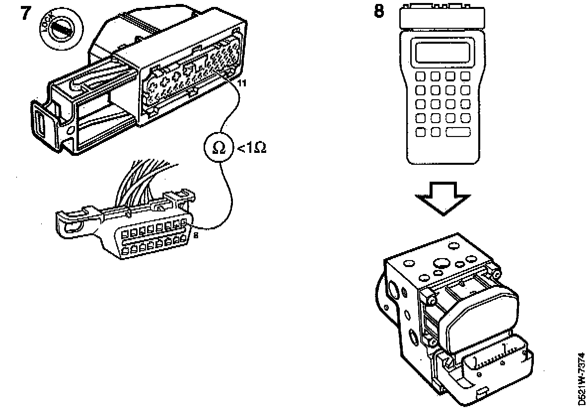 - Make a continuity test of conductors between pin 11 of the electronic control module and pin 8 of the diagnostic switch.