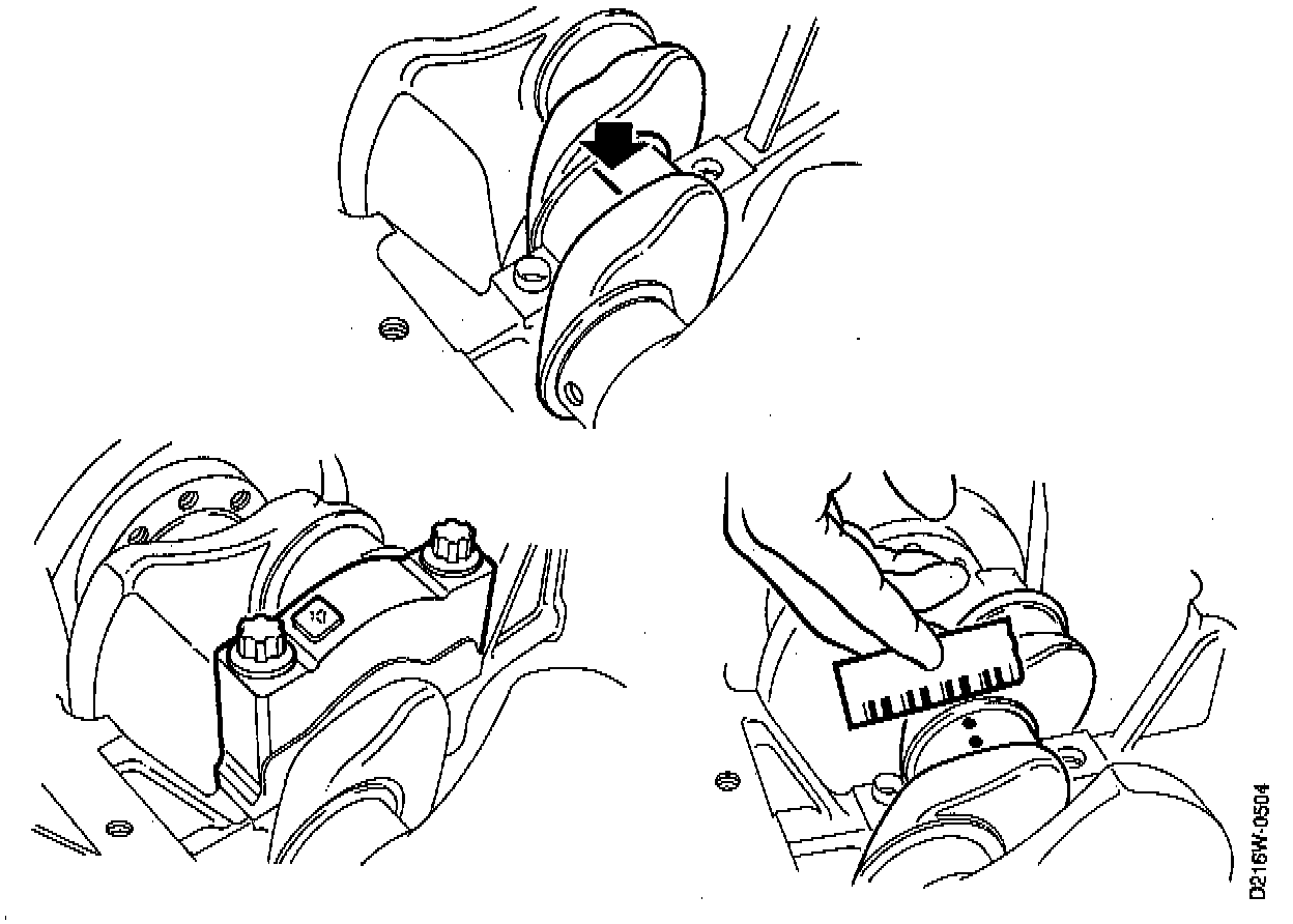 CAUTION When measuring bearing clearance by means of Plastigage, to prevent bearing failure due to oil starvation, make sure that none of it gets into the oil holes.