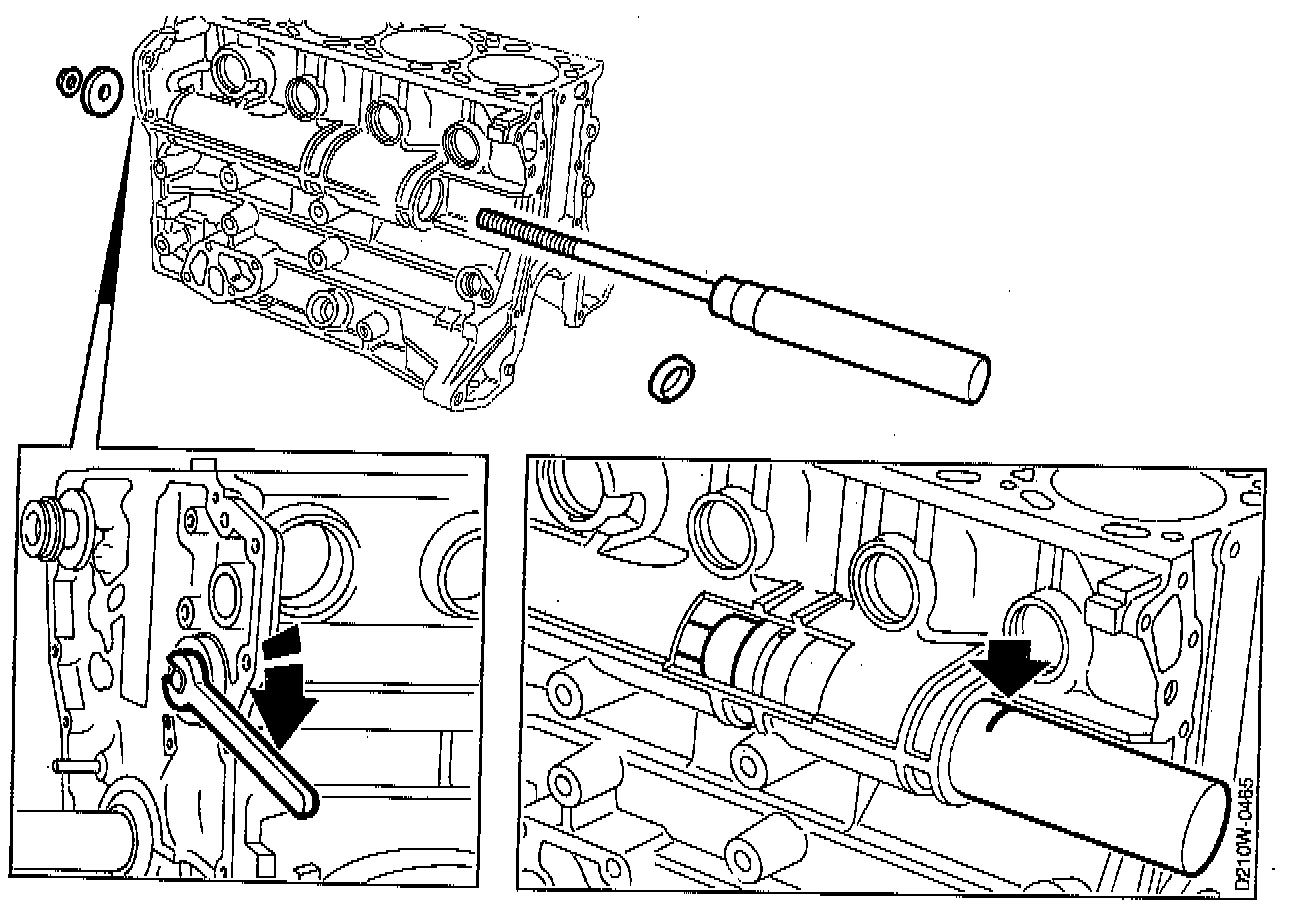 3 Insert the assembly tool from the flywheel end and install the pull rod with nut.