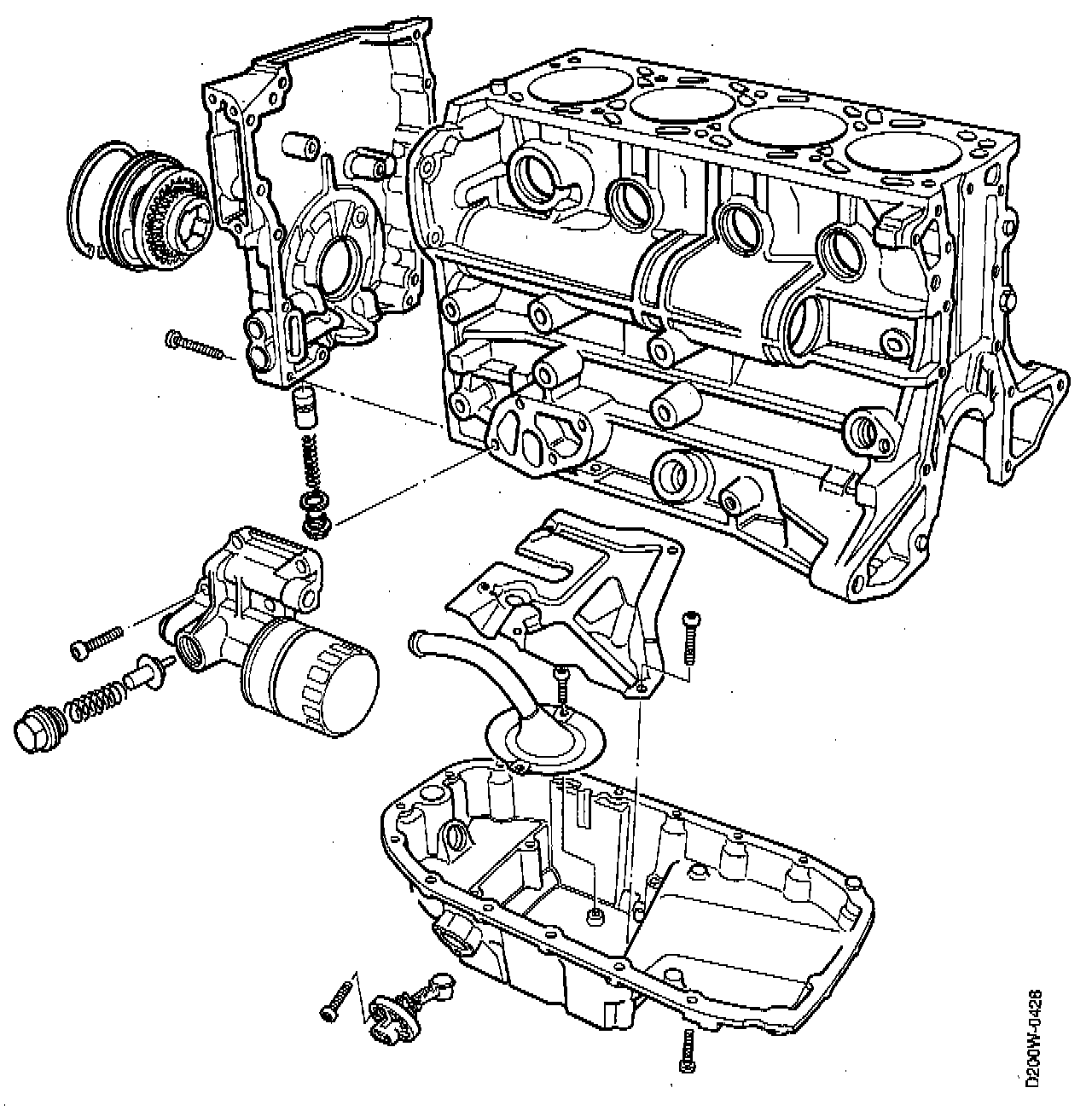 Both the timing cover and the end plate are specially designed to match the cylinder block. The timing cover incorporates the oil pump. The flanges on the timing cover and end plate are both sealed by means of Loctite 518 or equivalent.
