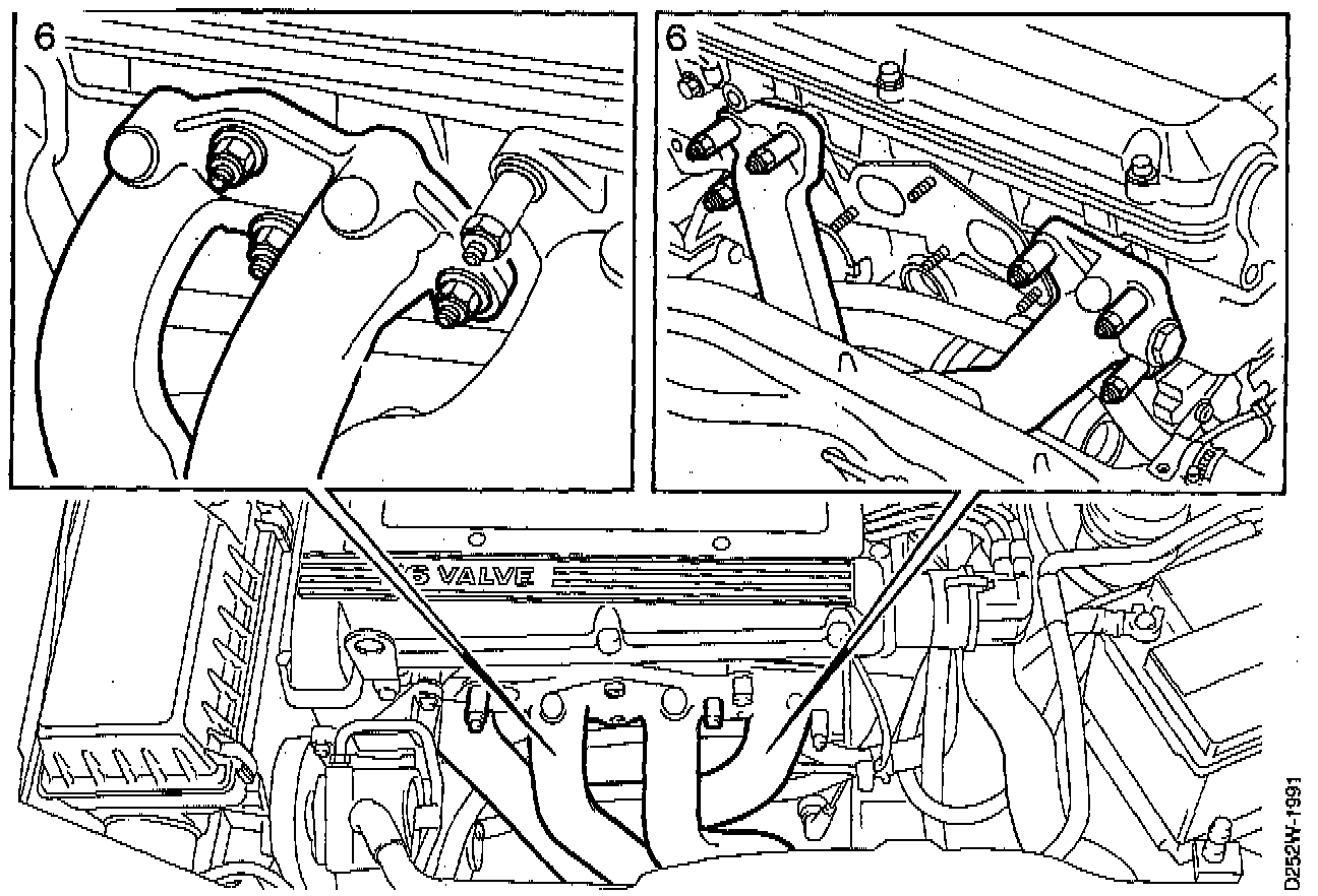 3. Unscrew the nuts between the exhaust manifold and the front exhaust pipe and lower the pipe.