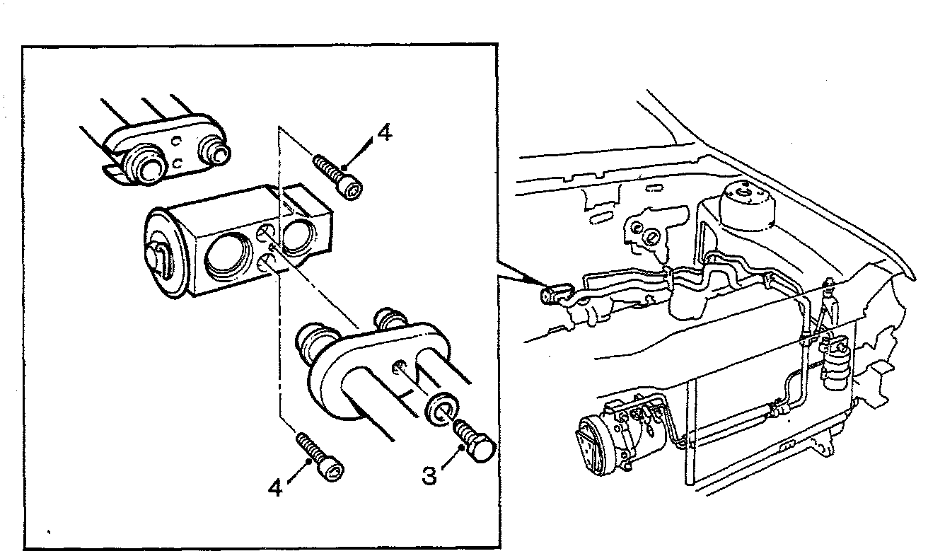 5. Lift out the expansion valve. Plug the openings in the A/C hoses.