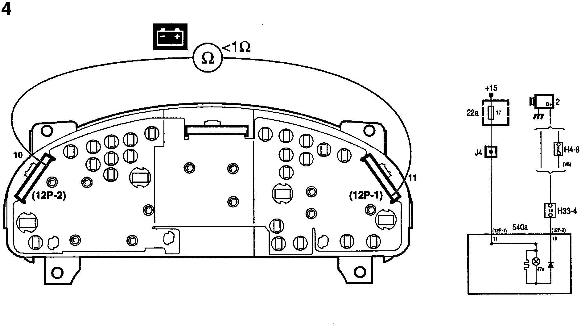4 Check the conductive foil on the rear of the main instrument display panel for an open circuit between the bulb's ground connection and the foil's corresponding connection to the connector.