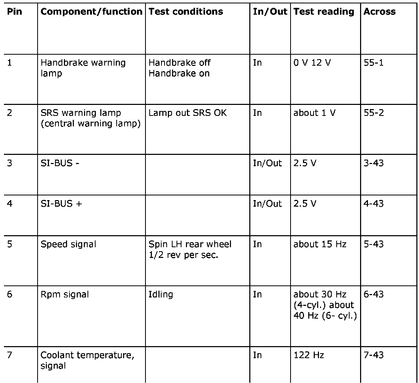 Test Readings, Pins 1 - 7