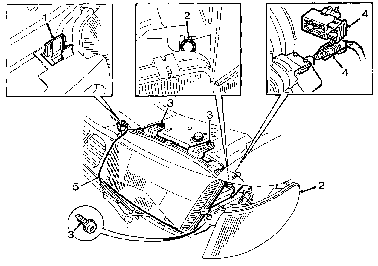 4 Lift out the headlamp slightly to facilitate unplugging the lamp connectors.